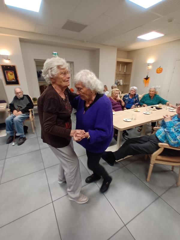 Le 31 octobre, nous avons fêté les anniversaires du mois d'octobre sur le thème d’Halloween. Pour l'occasion le personnel s'est prêté au jeu en se déguisant ainsi que certains résidents. Après avoir soufflé les bougies et mangé un bon gâteau préparé par notre cheffe, nous avons chanté et dansé sur des rythmes endiablés dans une ambiance chaleureuse.