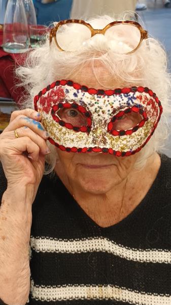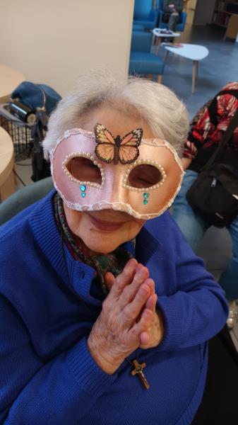 À l’occasion de la venue de l’association Venise-Passion pour une déambulation de costumes du carnaval de Venise, les résidents ont participé à un atelier de création et de décoration de masques vénitiens.