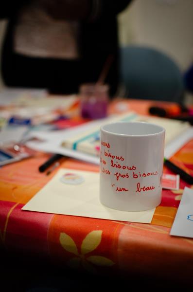 Grâce au soutien de notre partenaire Phusis Group, du matériel créatif a été mis à disposition afin de décorer des tasses et d’écrire de jolies cartes destinées à des enfants placés en foyer, leur transmettant ainsi des messages chaleureux pour Noël.